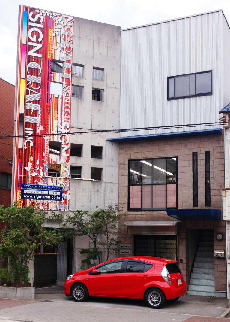今日会社の正面のグラフィックを貼り替えました。会社の前に置いてるアクアの赤に合わせて真っ赤にしました。工事の様子です。左半分を貼り終わったところです。今まで貼ってた紺色のグラフィックを残…